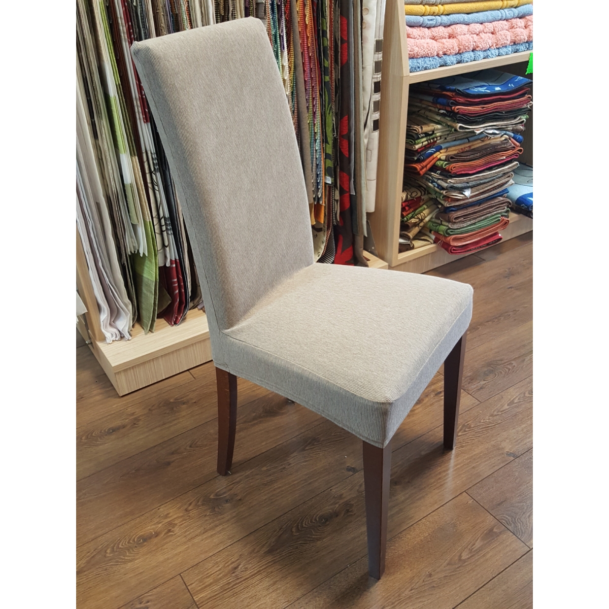 Prevleke so izdelane iz kvalitetnega elastiziranega blaga, ki je raztegljivo in oprijemljivo, zato se lepo prilega na stole. Blago ima posebno anti-piling obdelavo ki preprečuje kepanje blaga. Prevleke iz elastana lahko pripravimo samo za sedišče stola, v primeru da je oblazinjeno tudi hrbtišče pa lahko prevleko prirpavimo za ves oblzinjen del stola. Prevleke so zelo enostavne za postavitev in se lahko strojno perejo na 40 stopinj.